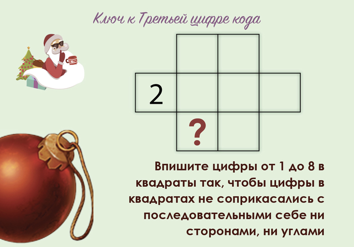 Итак, 3 цифрам соответствует 3 конверта - зеленый, синий и коричневый