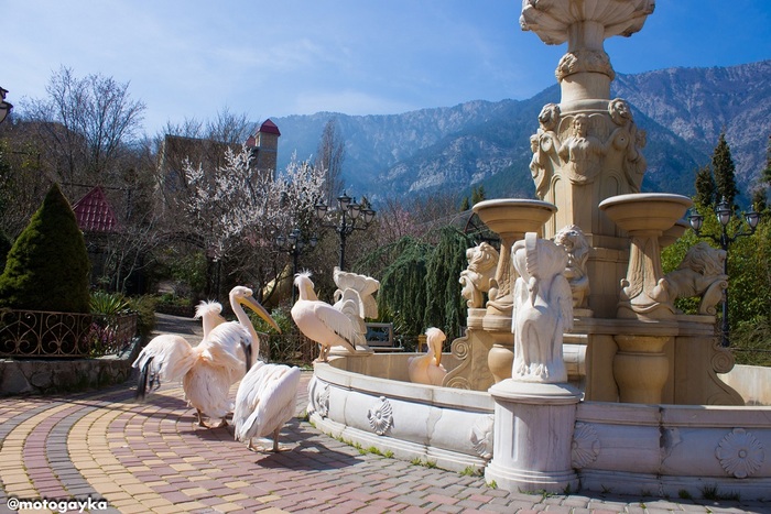 А вот и пеликанчики из ялтинского зоопарка, шастают там по аллеям, как голуби. Клянчат вкусняхи и грозно открывают клюв, если что-то им не нравится:)