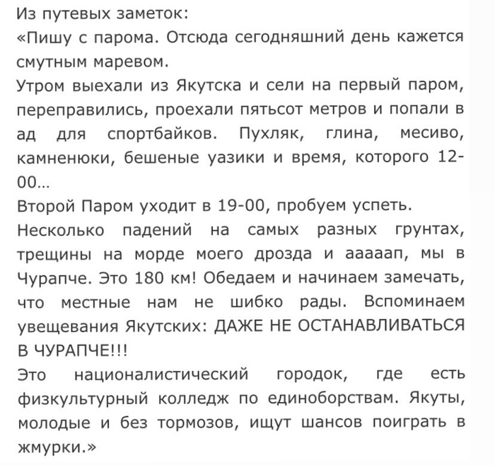 На отрезке Усть-Кахчан - Ягодное была кульминация челленджа, так что мне стало непринципиально, доеду ли я до Магадана сам на мотоцикле или на фуре. То бишь, если б с мотоциклом что-то случилось, то я бы его скорее просто оставил и поехал дальше