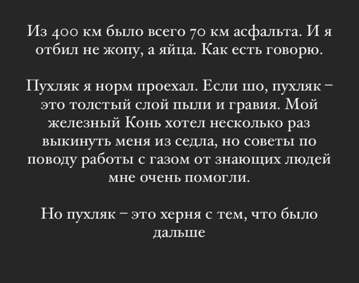 После этого мототрипа Николай предложил мне поехать в 2022 году в Австралию на мотоциклах. Не знаю, будет ли его предложение еще актуально на тот момент, но я загорелся идеей и хочу это сделать. На саму поездку, не считая мотоцикл, нужно будет 10 тыс$. Сейчас я занимаюсь бизнесом и зарабатываю для этой поездки деньги