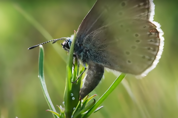 Начинается всё очень традиционно: после спаривания самка отправляется на поиски наиболее удачного места для того, чтобы отложить яйца. Вот только ищет она, в первую очередь, не определённый вид растений или безопасный уголок – ищет она муравейник, рядом с которым найдутся бобовые или горечавковые растения, пригодные в пищу для её гусениц. На первое время. Отложив яйца, она оправляется на родные луга, беззаботно порхать вокруг цветочков – столько, сколько ей осталось. Её участие в грядущем мошенничестве косвенное – основная работа по обману муравьиного населения придётся на долю её детей.