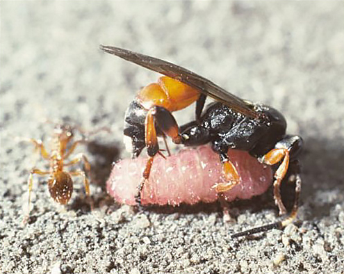 Если муравьи недоглядят, то к ним в муравейник проникнет главный враг голубянок – паразитическая оса-наездник Ichneumon eumerus. Она пришла по душу гусеницы, муравьи ей не интересны, и она устраняет их очень просто – выпускает специальный секрет, который банально сводит муравьёв с ума. Они начинают паниковать, бросаться друг на друга и оставляют личинок без присмотра. Именно этого наездник и дожидался. Проникнув в муравейник, оса откладывает яйца в тела гусениц голубянки, и теперь сама голубянка окажется домом и столовой для растущих личинок наездника, и в итоге погибнет.