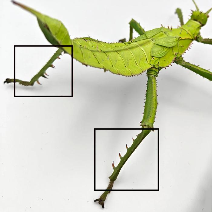 Все палочники славятся тем, что ловко маскируются под разные части растений, и наши сегодняшние герои не исключение. Любопытно, что самки и самцы различаются и в этом вопросе. Для самок характерна ярко-зелёная или зелёно-жёлтая окраска, делающая их мало отличимыми от листьев тропических деревьев.