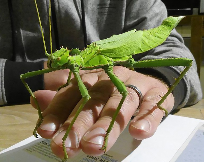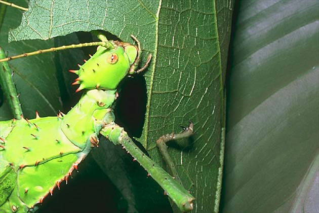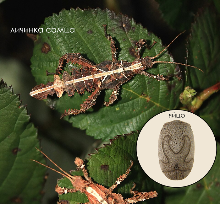А ещё самцы умеют летать. У самки крылья тоже есть, но они маленькие, и она лишь способна ими злобно скрежетать, будучи потревоженной. Все детки джунглей – ребята агрессивные и драчливые, и могут сильно поранить шипастыми задними лапками.