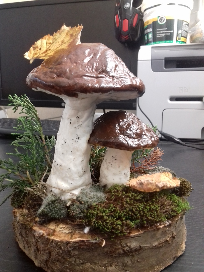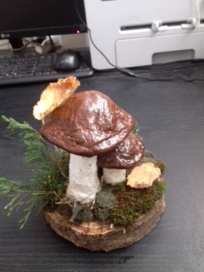 Так как ко вчерашнему посту Поделка в садик. было очень много комментариев, относительно того, что поделку должен делать ребёнок сам, лишь с небольшой помощью родителей, решила выложить труд моего среднего сына, ему 5 лет, я помогала только все приклеить и оформить. Грибы делаются элементарно из ваты, так что для ребёнка не сложно их ни сделать, ни покрасить. И то, что они получаются корявенькими, на мой взгляд, их это не портит.