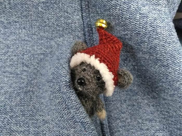 Мышь -малыш . Связан крючком из овечьей +мериносовой шерсти Рост -около 5,5 см. Колпак снимается.
