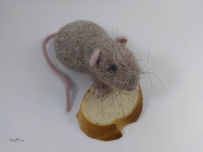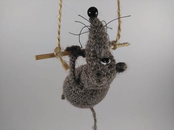 Крыс- связан крючком из 100% овечьей полугрубой шерсти. Размеры - около 11 см