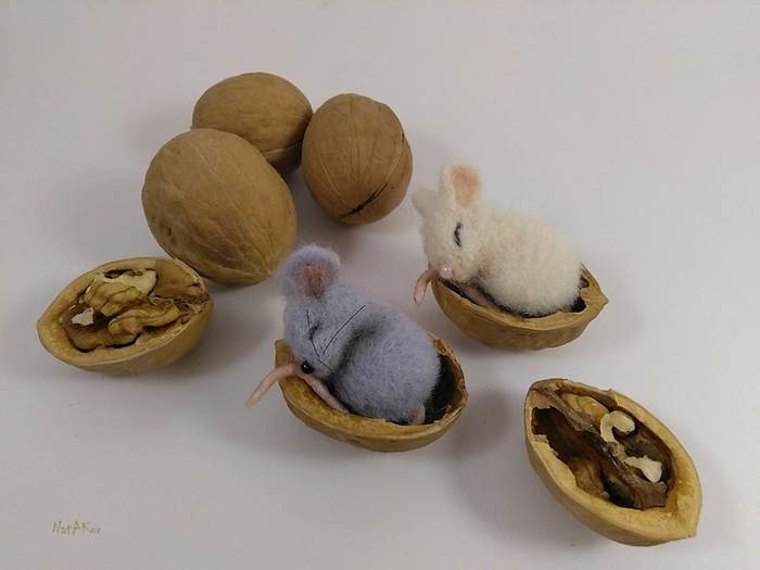 Мои мышки - брошки сваляны из шерсти методом сухого валяния и имеют размер 4 и 4,5 см .Не воруют ,не метят,не грызут, только спят ))