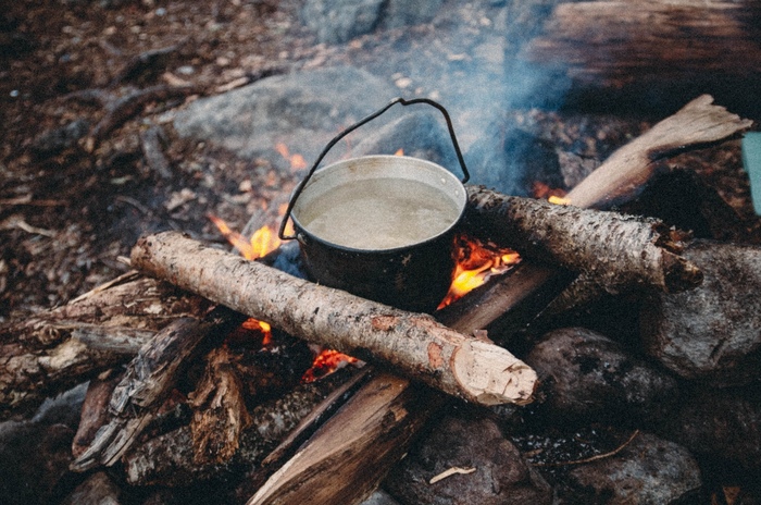 Пришел черед готовить ужин. Я достал из недр потрепанного рюкзака старый прокопченный котелок, зачерпнул воды прямо из Ладоги, и поставил его на костер.
