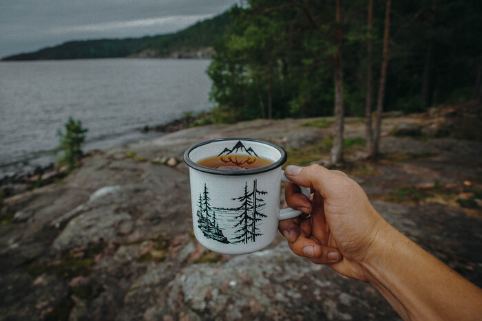 Ветер подуспокоился, и волны мягко колыхались, а не разбивались о берег. Лениво трепыхались ветви деревьев, покачивались еловые лапы. Темные облака медленно проплывали над головой. Я сидел на камне, маленькими глоточками отпивая чай из кружки. Горячий чай разогревал железную ручку, и я прикладывал его из одной руки в другую. Приближалось утро.