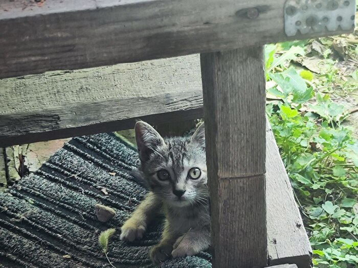 По возвращению из отпуска обнаружили у себя в саду пять тощих котят, в части, закрытой от собаки.