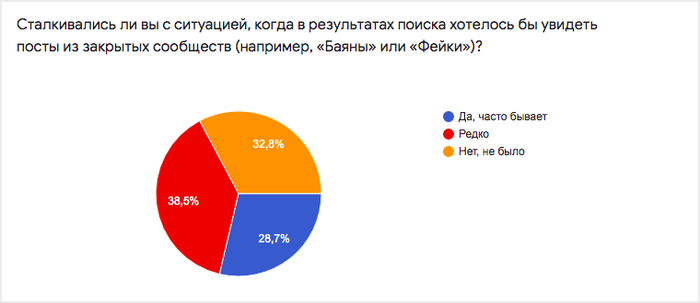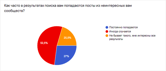 53% эта возможность пригодилась бы, так как им иногда в результатах поиска попадаются неинтересные для них сообщества. У 27% такое случается часто.