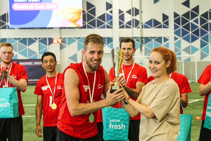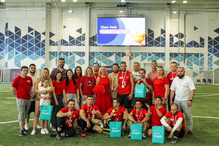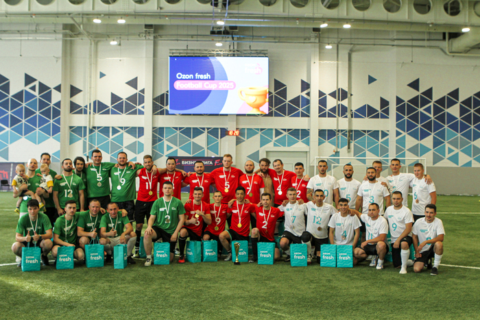 25 июля на стадионе академии спорта «Динамо» прошел первый масштабный турнир по мини-футболу Ozon fresh Football Cup среди наших сотрудников склада и курьеров. Команды из шести регионов встретились на одном поле в Москве, чтобы побороться за кубок, показать силу командного духа и просто классно провести время. Спойлер: все получилось именно так, как мы задумали — а местами даже лучше.