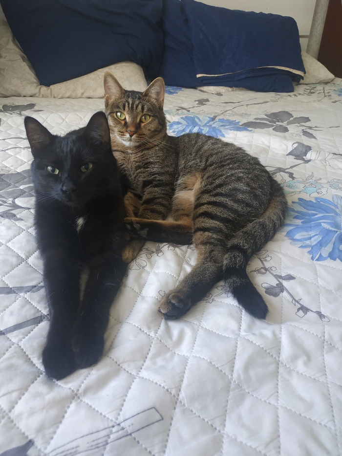 Вот так спят мои котики вместе. Только сначала они натыгыдыкались, потом устроили побоище на кровати. Сил не осталось, было решено прерваться на сон.
