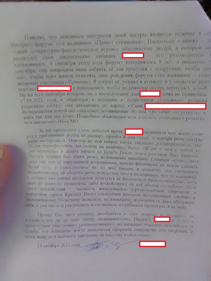 Предысторию того, как я вообще оказалась в Крыму, можно увидеть в Ответ на пост «Продолжение поста "Помогите! Нас незаконно хотят лишить дееспособности"». Если коротко - пришлось переехать, чтобы забрать к себе человека, которому угрожали лишением общения с окружающим миром, если не перепишет квартиру на примазавшихся к родне личностей.
