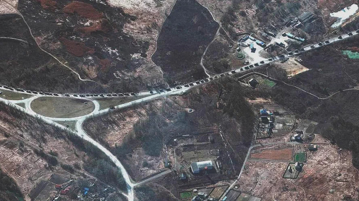 Авторы многочисленных публикаций ссылаются на спутниковые снимки компании Maxar Technologies, на которые отчетливо видна российская колонна.