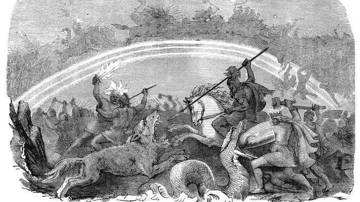 Вот такая вот страшная история об мифической языческой реальности. В целом - это лживые франки. Они и через столетие будут на серьёзных щах писать о призраках норвежских лыжников, пугавших франкских егерей. Так что, смешные басни - их давняя традиция