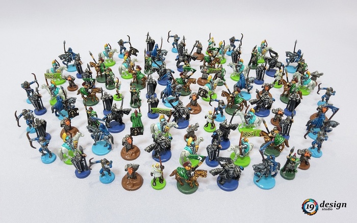 Для добрых армий я выбрал холодные оттенки - серебряный, голубой, зелёный, белый. Исключением стала коричневая палитра гномьей армии