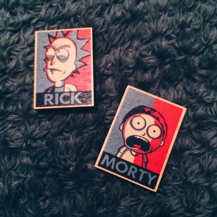 -Значки с Риком и Морти.
