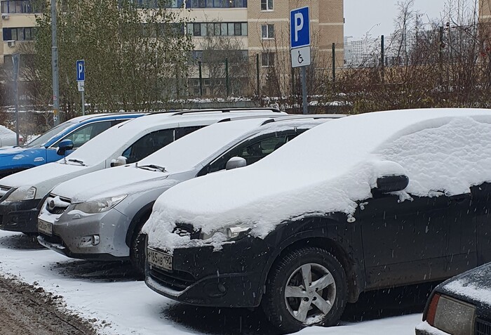 Да запросто! С торца парковочных мест установлены знаки - парковка для инвалидов. Причем, разметки на асфальте нету, только этот знак. Пять мест – два крайних инвалидные, остальные обычные.