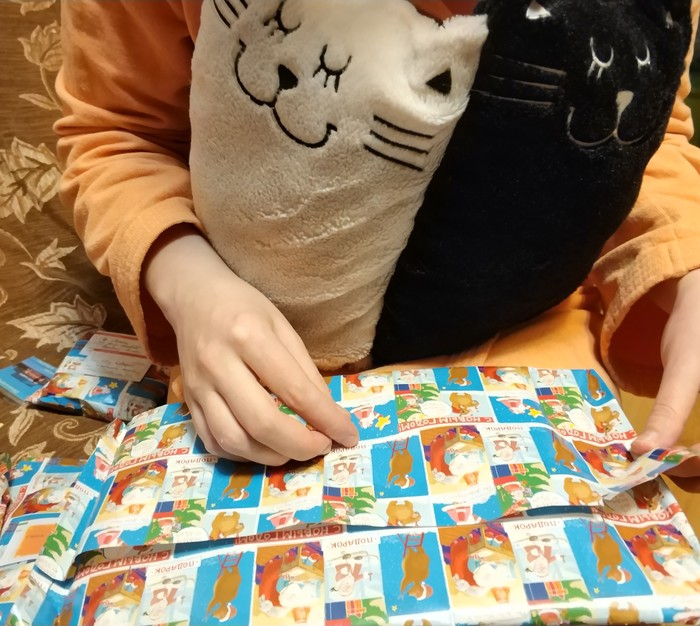 Мои помощники Уголёк и Беляшек помогали мне открывать подарки..