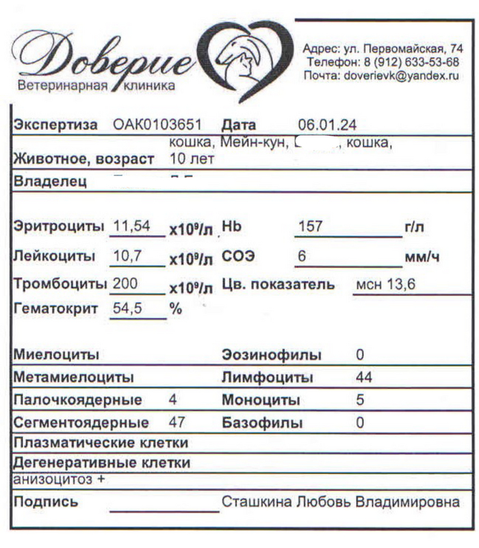 Может кто-то помнит историю о белой кошке с одной почкой. Хотя навряд ли, последний пост о ней был тысячу лет назад. В любом случае, сейчас кошке потребовалось очередное ТО, в ходе которого надо откусить один зуб и новообразование на шее (фото ниже, приличное, без жести). В одной из клиник сдали ОАК и БАК, сделали УЗИ сердца. Собственно, в чтении их я и прошу помочь, кому не сложно. В чем состоят мои сомнения: у кошки одна почка, в связи с этим в любом случае в анализах не будет нормы по всем пунктам, и плюс ей 10 лет (а обещали, что помрёт в 4 примерно, почку отрезали в год). В клинике говорят, что очень надо перед операцией понизить уровень калия, в связи с чем провести две или три капельницы по одному дню каждая, затем пересдать калий. На этот срок кошку предлагается оставить в стационаре. Общая сумма развлечения около 10к только за капельницы. При этом кошь предлагается оставить в клетке одну без постоянного контроля на весь срок введения, а на ночь отдавать домой. При этом в анализе чётко видно, что калий превышен совершенно незначительно, в отличие от других показателей, которые врача не заинтересовали. Вопрос: так ли важно с учётом анатомии коши превышение именно калия, и какая капельница может вводиться целый день (вес кошки 5,5 кг, а не 55). Нормально ли, что другие показатели никак не побеспокоили врача? Есть подозрение на развод на стационар и ненужные манипуляции при отсутствии нужных. Завтра едем ещё в другую клинику, есть ли смысл пересдавать БАК/ОАК? На фото все три бумажки и натюрморт "личи прилипло". Помогите плиз разобраться, денег на разводы немного, но все необходимое я для неё сделать готова.