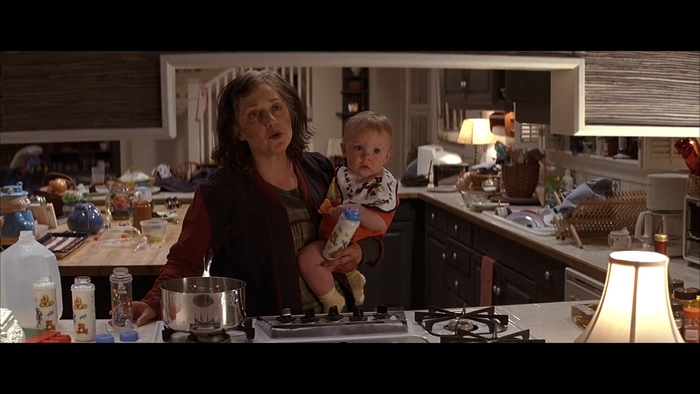 Когда Шейн объявляет, что мама задерживается, дети наперебой начинают выкрикивать причины, по которым они не могут сидеть дома. И здесь шутка потеряна не столько из-за перевода, сколько из-за озвучки - слова Лулу невольно заглушает Шейн. В оригинале: