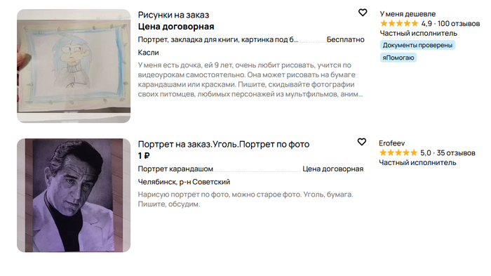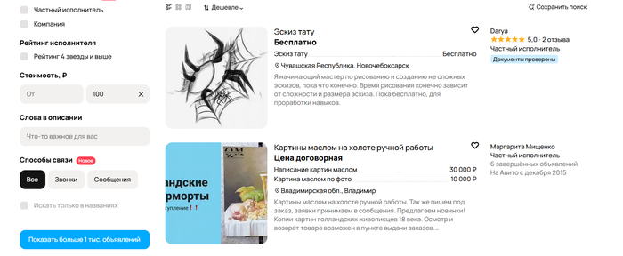 Но я точно помню что были художники и дешевле, сортирую по своему региону и вот они, сразу после договорной цены
