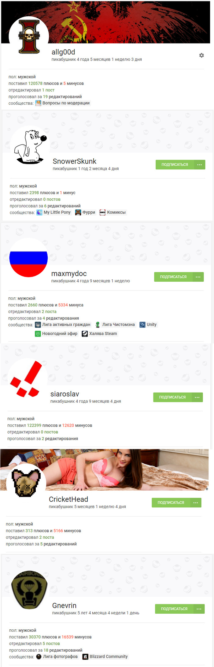 После чего я попросил некоторых людей перейти по этим ссылкам и сделать скриншоты комментариев/редактирования тегов/постов. Чтобы было видно как часто человек как либо реагировал (плюсовал/минусовал) на каждую из ссылок.