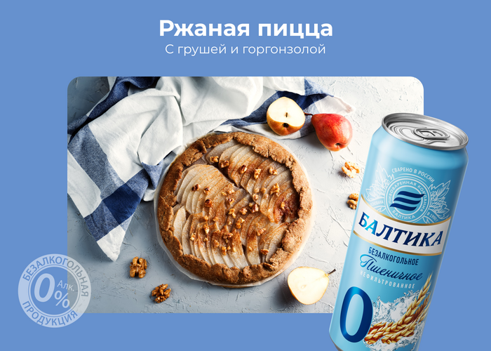 Балтика 0 Пшеничное добавит легкую кислинку и станет идеальным освежающим напитком к обжигающе горячей пицце.