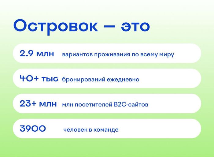 Люди используют мобильные приложения, а компании активно применяют технологии для улучшения сервиса. Пандемия тоже повлияла — сделала гибкость и безопасность бронирования ещё более важными аспектами. Островок активно подстраивался под эти изменения.