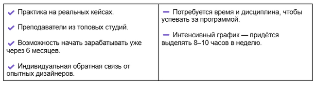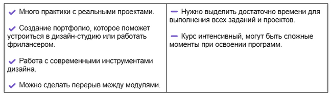 ➖ Интенсивность обучения дизайну может показаться высокой.