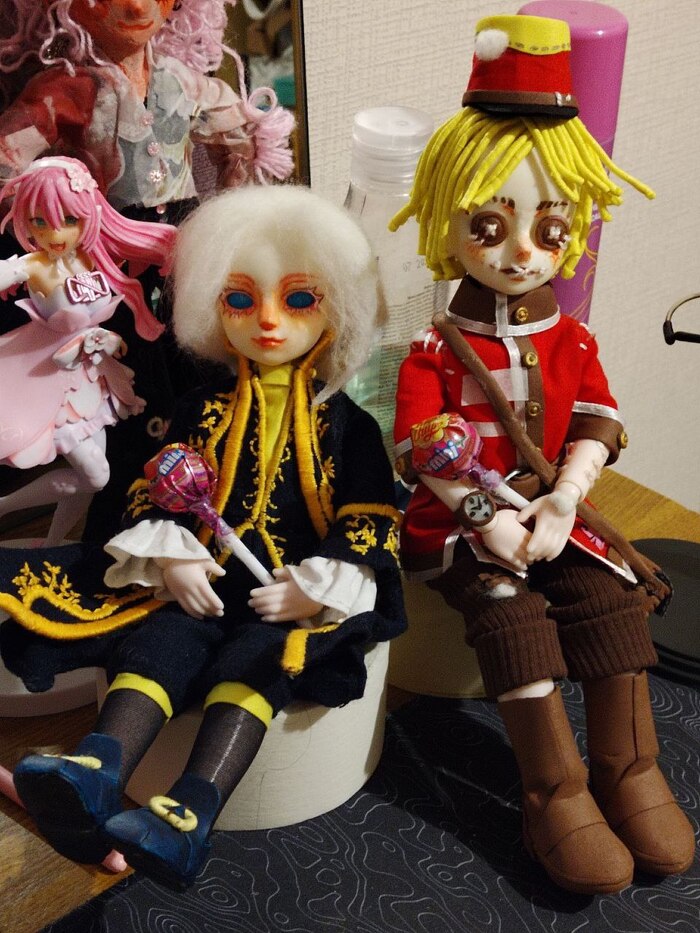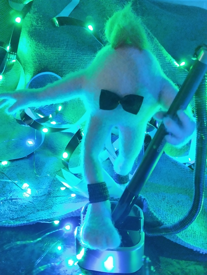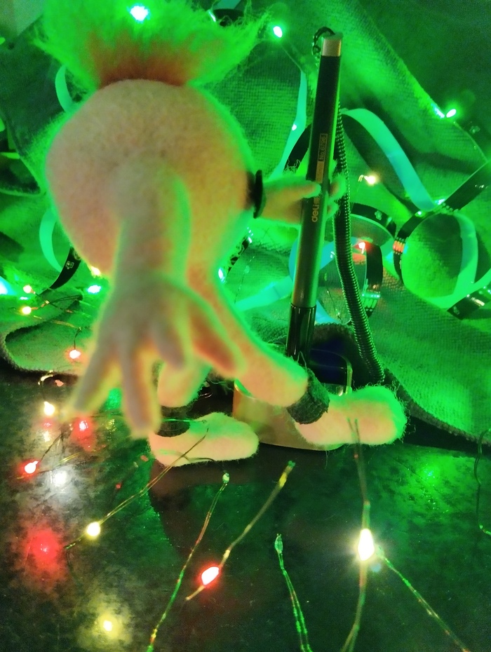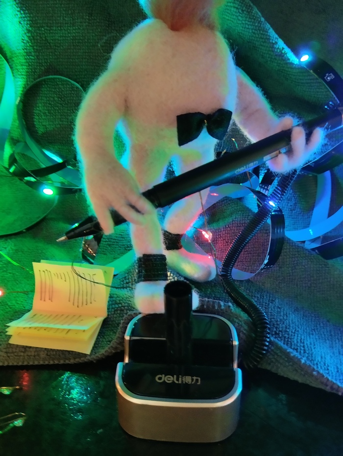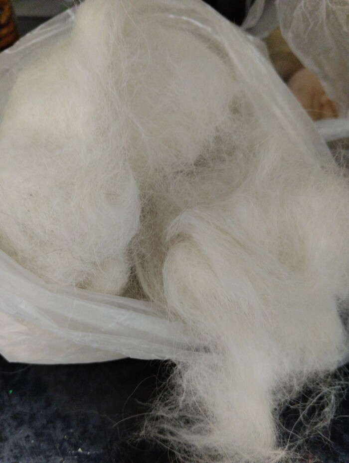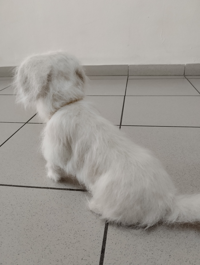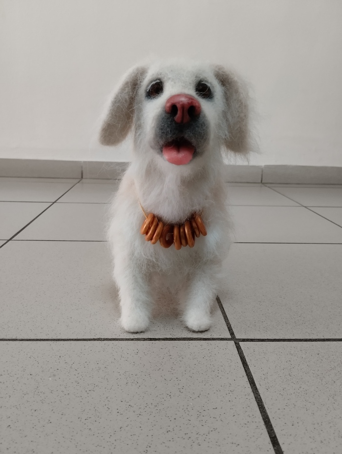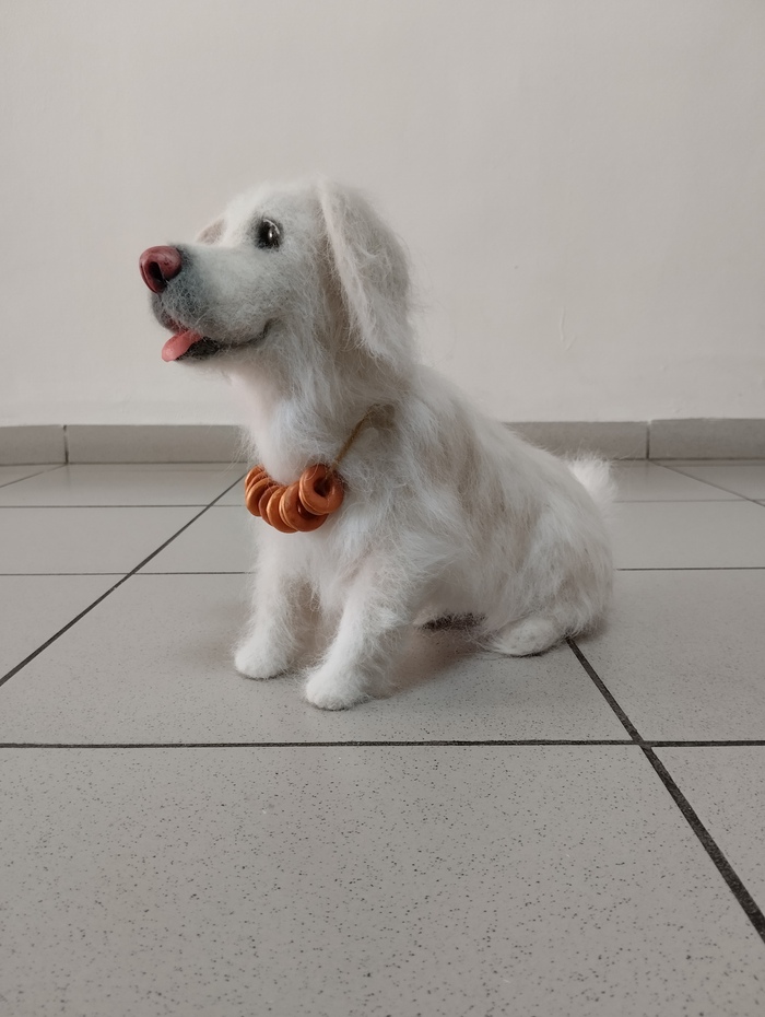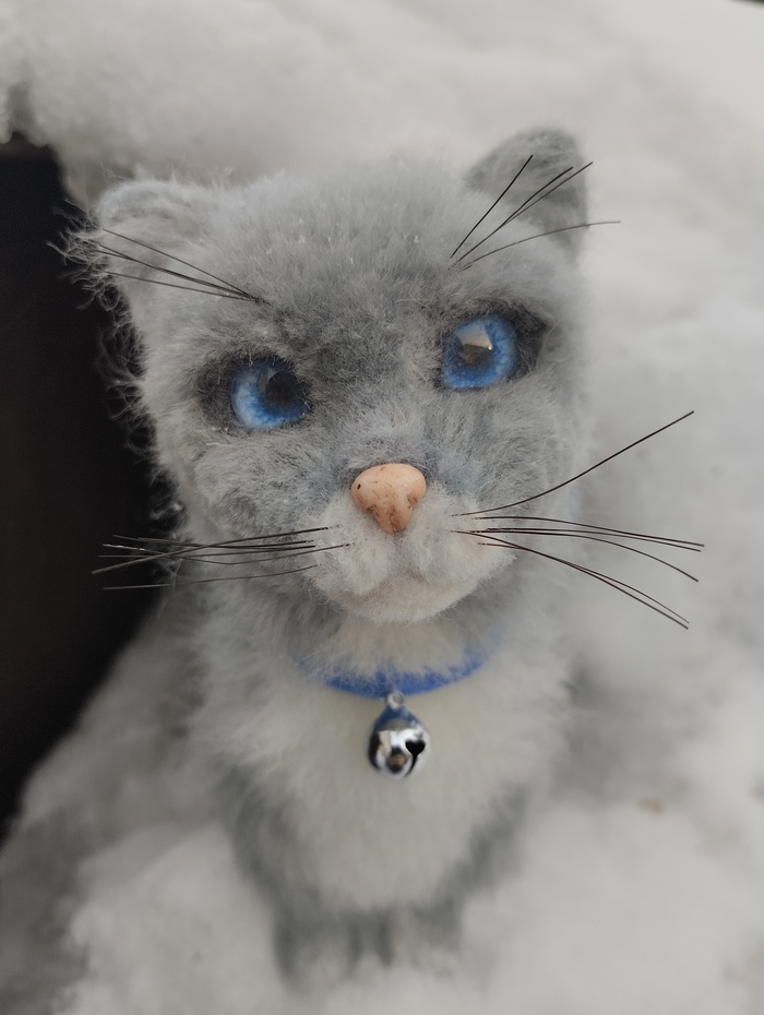 Сделана из шерсти, кабошоны для глаз и глина для когтей и носа.