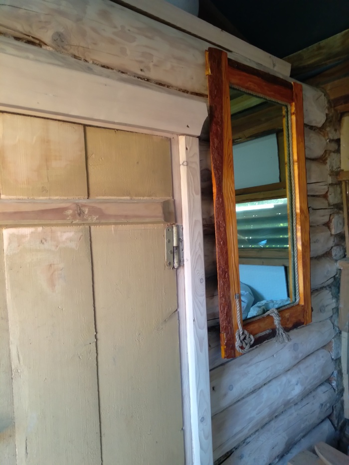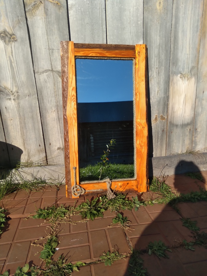 Из отходов собрал рамку для зеркала, светильник в предбанник и полочек под воду