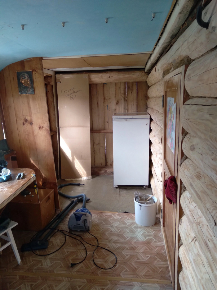 Главной проблемой, требовавшей скорейшего вмешательства, был просевший задний угол дома. Я позвал своего родственника - специалиста по реконструкциям деревянных сооружений, и мы с ним вдвоем за 3 дня, с помощью домкрата 10-тонника, лопаты и двух ломиков разъебали полдома вывели нижние бревна дома в приемлемую горизонталь.