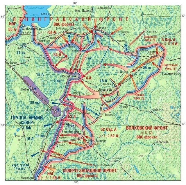 Здравствуйте, Уважаемые читатели! 8 сентября 1941 года враг вышел к Ладожскому озеру и блокировал Ленинград по суше, но это еще на было катастрофой. А вот отход наших войск в ходе Тихвинской оборонительной операции к железной дороге Тихвин-Волхов, которая вела к Ладожскому озеру и оставление города на ней Тихвина, привели к резкому снижению поставок в Ленинград, и не смотря на то, что враг в ноябре 1941 года был на подступах к столице, первую наступательную операцию проводят на северо-западе, несколько позже будет наступление под Ростовом-на-Дону и контрнаступление под Москвой. В чем был интересный момент этой операции? А в том, что Тихвинская наступательная началась 10 ноября 1941, а Тихвинская оборонительная закончилась 18 ноября. Да, одновременно наступали и наши, и немцы. Так, в районе Малой Вишеры нашим приходилось обороняться вплоть до 25 ноября. Кстати, Малую Вишеру освободили раньше, причем ударом с обратной стороны фронта, когда атаковали две группы по 500 человек, проникшие в тыл врага, перехватившие коммуникации, вынудив немцев отойти.