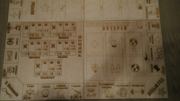Кроме поля из дерева были сделаны фишки игроков, жетоны игроков, деньги и прочие ресурсы. И вот тут все немного пошло по пи*де. (Спойлер: у нас все так или иначе немного по пи*де пошло)