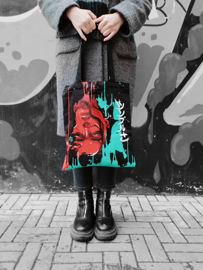 Тк было невтерпеж ждать, пока там тrue акрил по ткани ко мне придёт уже, я рисовала акрилом обыкновенным, а шоппер предварительно загрунтовала белым грунтом. Пока ни о чем не жалею)