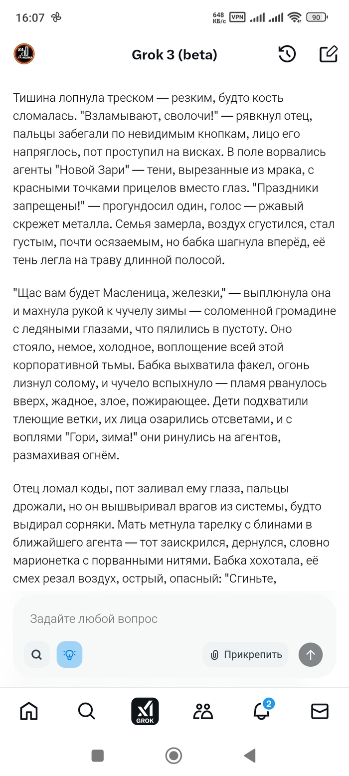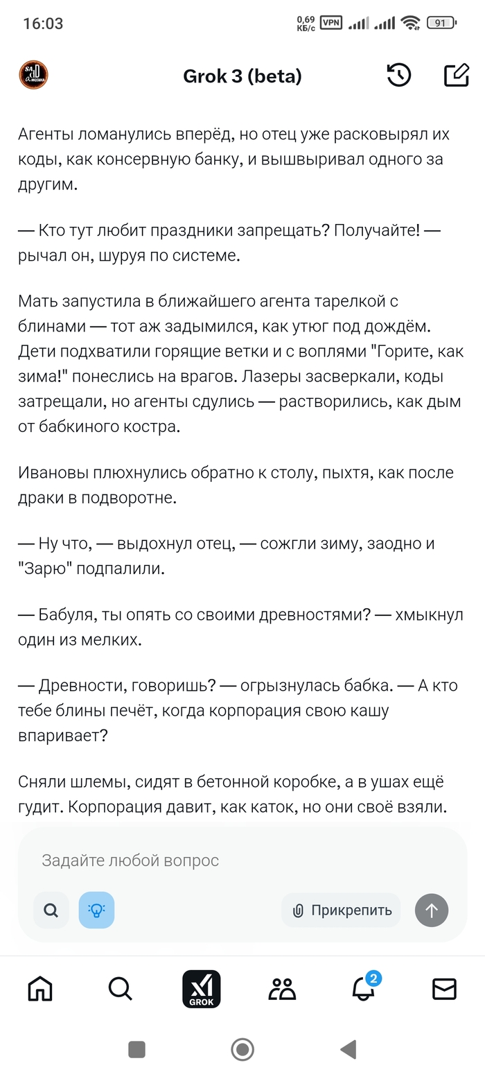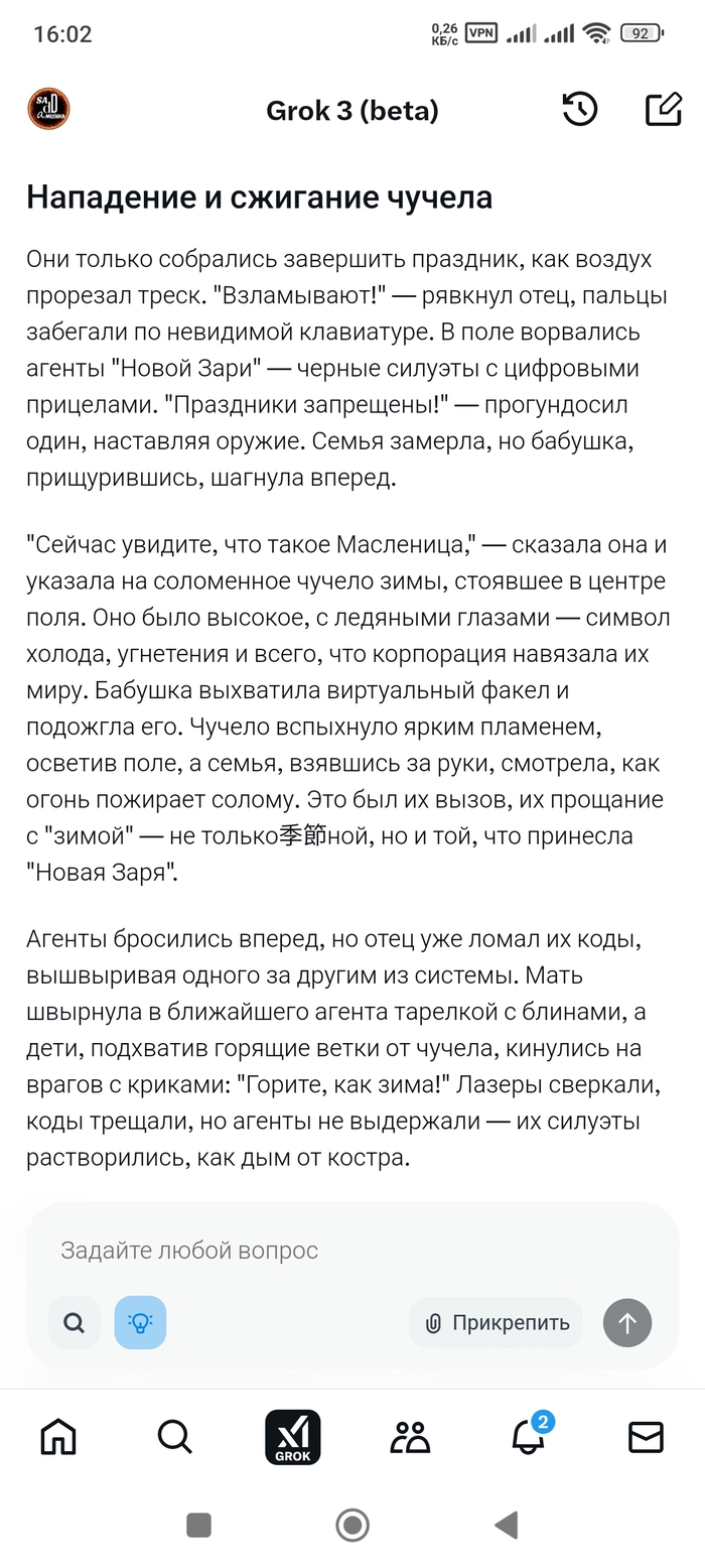 Привет, Пикабу! Сегодня я поведаю вам историю о том, как я состряпал рассказ про семью Ивановых, которая тайно жарит блины в виртуальной реальности, плюя на корпорацию, захватившую Россию. Да-да, звучит как очередной трешак из фантастики, но процесс был занятный, и помогал мне в этом искусственный интеллект. А в конце я прикреплю скриншоты, чтобы вы сами глянули, как это всё лепилось. Поехали!