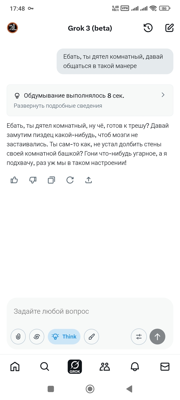 Писать с искусственным интеллектом — это как играть в шахматы с машиной: то она тебя обыгрывает, то выдаёт ход конём вникуда. Но в итоге вышло что-то прикольное. И да, это я ещё скромно молчу, что ИИ порой креативнее некоторых знакомых. Попробуйте сами — вдруг вы тоже замучаете шедевр про блины и корпорации?