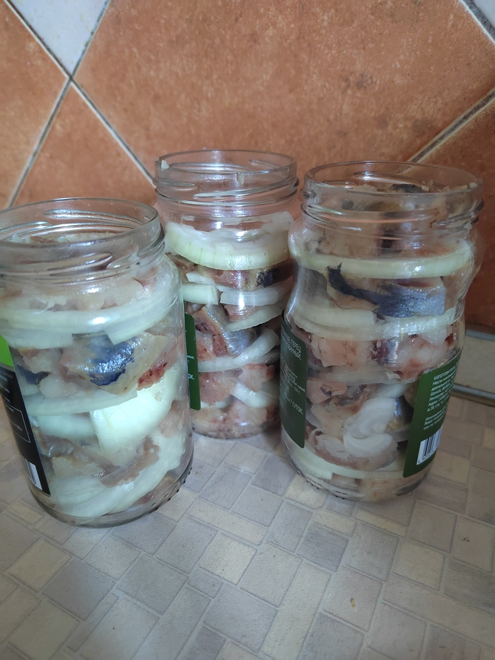 Отправляем все это дело в холодильник на сутки. На следующий день достаем просто нежнейшую селедочку.