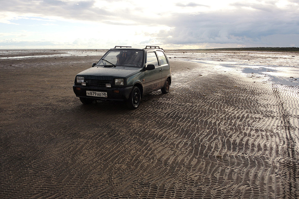 Режим движения свободный: где устал - там поспал. Где захотел - там помылся. Жене грел газом "баню" в отдельной палатке, сам больше мылся в открытых водоемах. Средний расход топлива по трассе на скорости 110 км/ч составил 5.5 литров на сотню, в общем за поездку - примерно 5.9 на сотню. При загрузке около 380 кг, включая меня с женой. Максимальный суточный пробег - 1300 км по трассе. Общий пробег за обе поездки - 13000 км, из них около 250 км реальной жести. Машине 12 лет, пробег 150к. По-настоящему серьезных поломок в дороге не было, за обе поездки (суммарно 13000+ км):