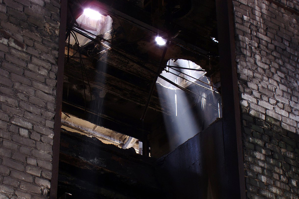 ДК не безопасен для посещения. Не знаю, стоит ли он сейчас вообще, или рухнул под собственным весом. Какие-то "умельцы" подергали тросами стальные перекрытия из оконных и дверных проемов, массивные стены пошли трещинами. Внутри полный хаос, но дух той страны, которая в период послевоенной разрухи находила в себе силы строить космодромы и Дворцы Культуры, в 2013 году все еще витал под разодранной крышей. Быть может, витает и сейчас.