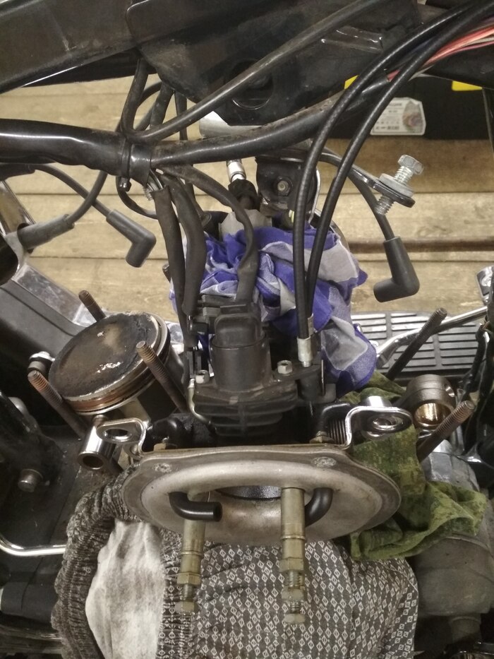и закипела работа - был снят выхлоп, снята крышка двигателя, и вот что я увидел: