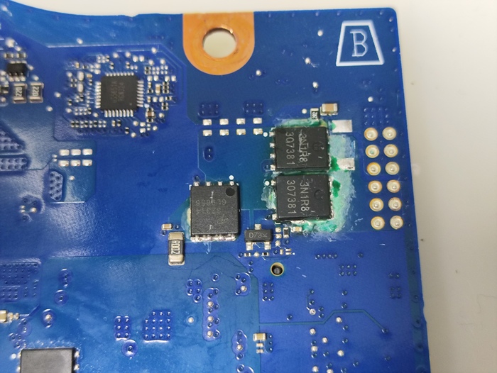 Возвращаем на место входные ключи, меняем шим дежурки 3.3в, заодно за кадром меняем хаб HM770 на новый (он сидит на питании 3.3в, очень повезло, что в данном ноутбуке он находится НЕ внутри процессора).