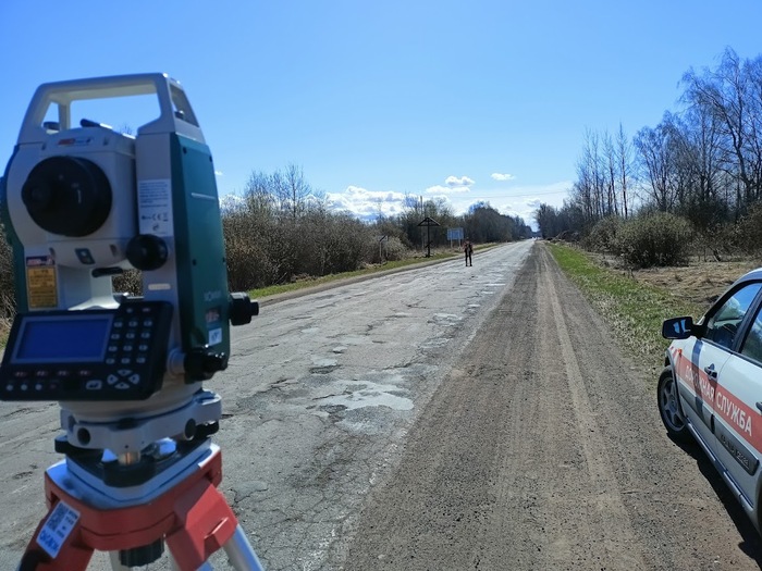 Не теряя время, приступаем и к практической части, а именно проводим разбивочные работы уже непосредственно на дороге силами геодезистов.