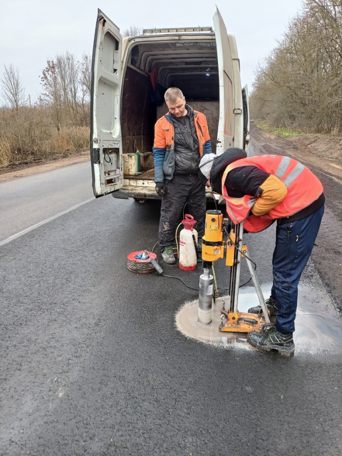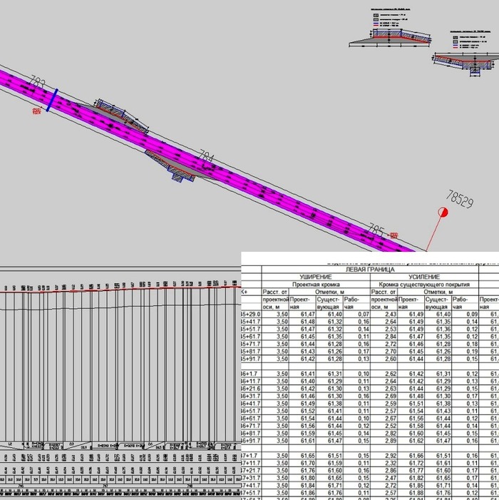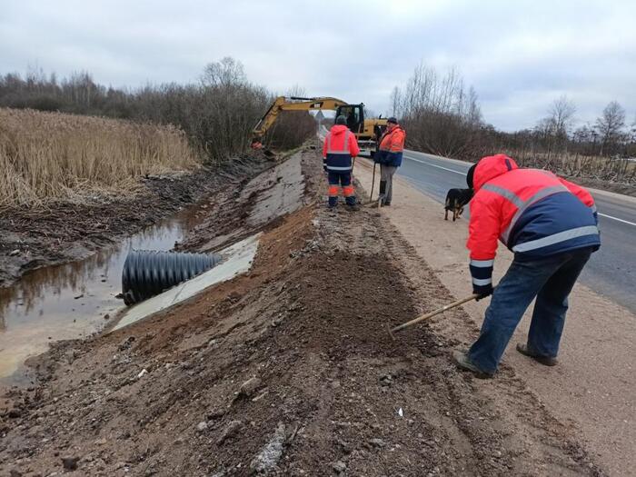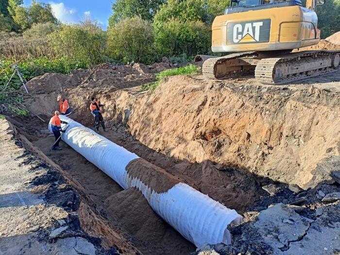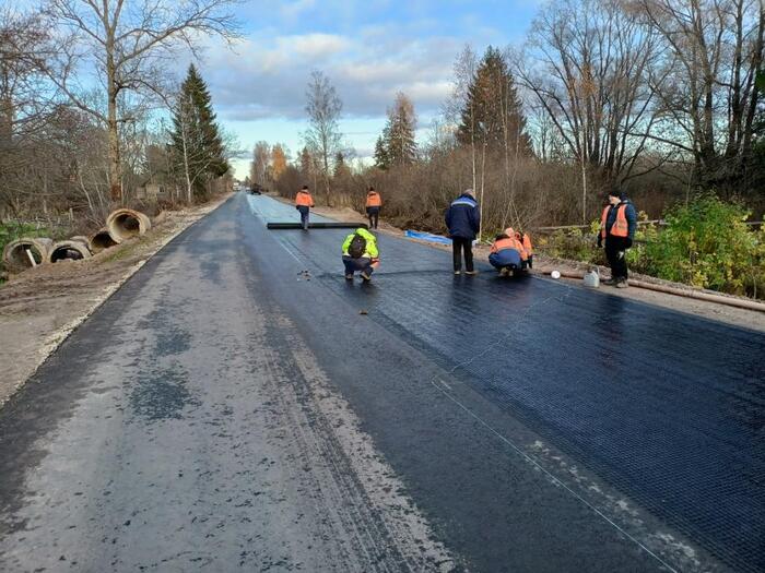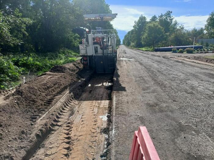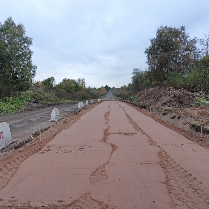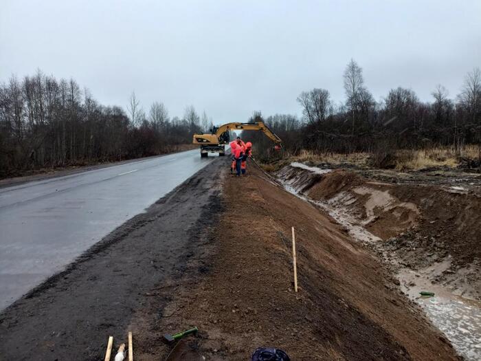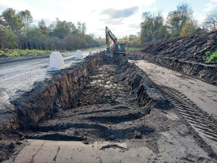 Кроме труб на этой дороге нам попался отрезок с «пучинистыми» грунтами, где дорожное покрытие проседает и раскачивается под нагрузкой от транспорта. Поэтому тут предусмотрели полную разборку дороги с заменой всех конструктивных слоев.