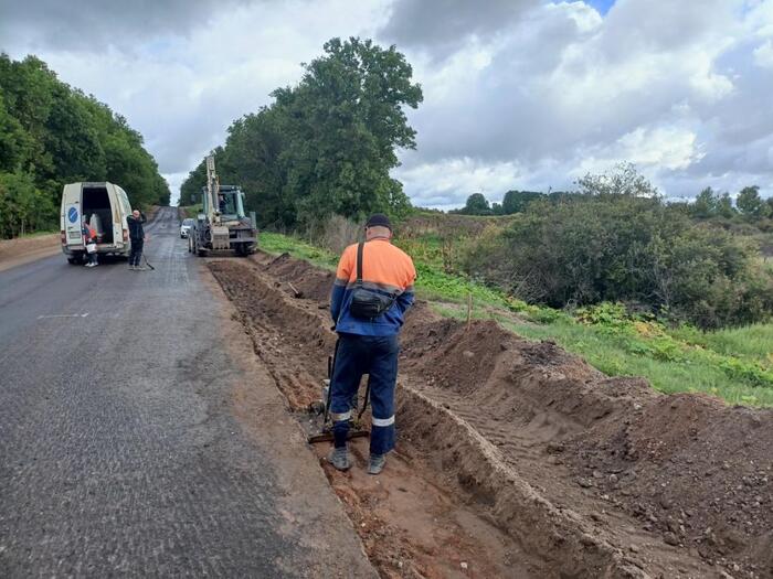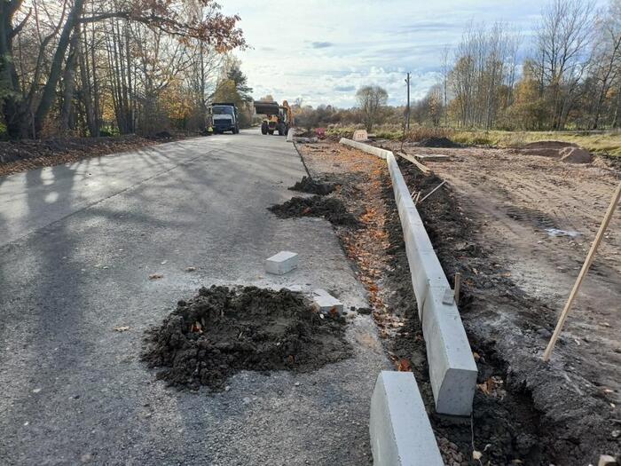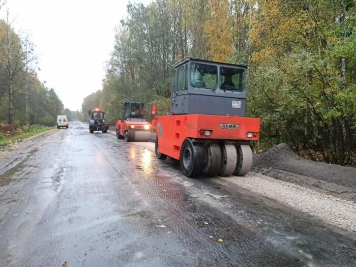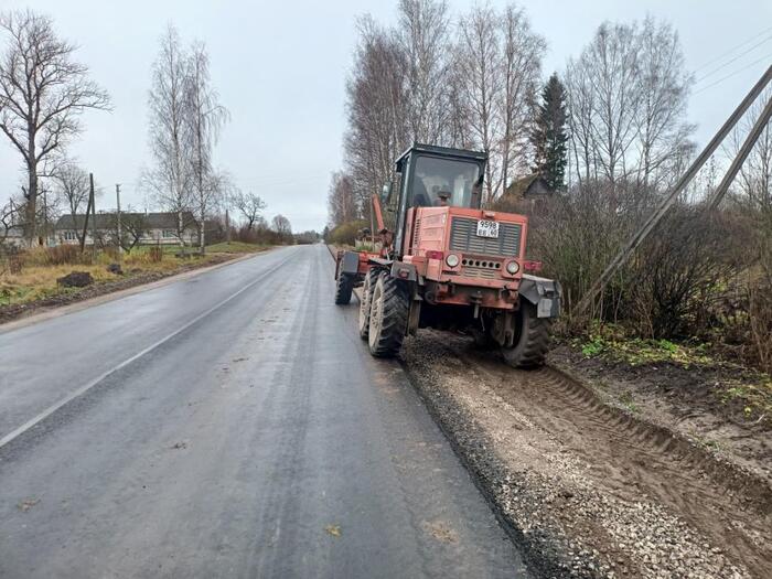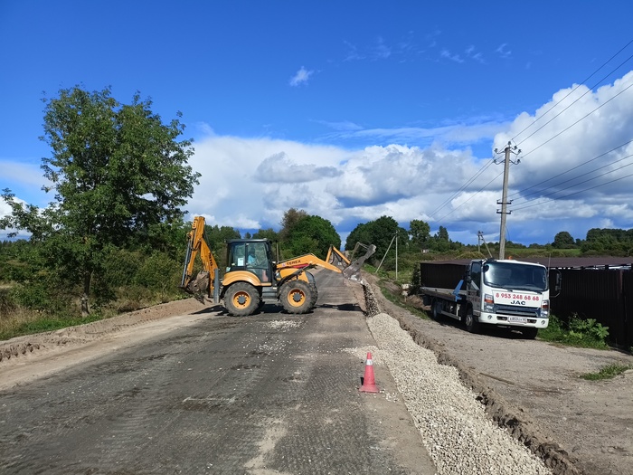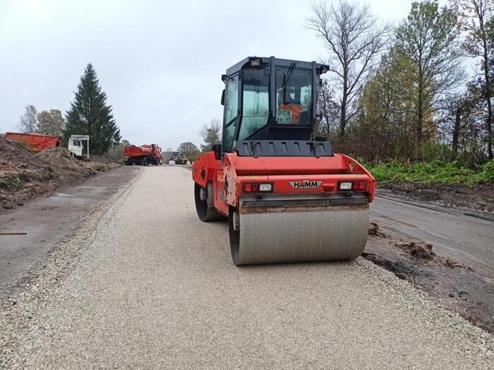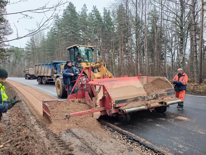 Дело в том, что наша дорога настолько старенькая, что просто не выдерживает нормативы по ширине. Поэтому уширяем, делая выборку грунта, отсыпаем основание и уплотняем.