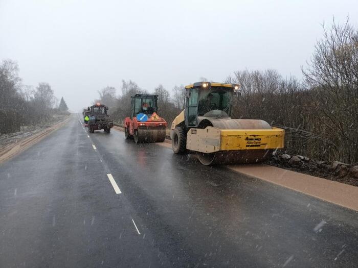 Осталось лишь нанести разметку, установить новые дорожные знаки и сигнальные столбики, все подмести, очистить, где-то что-то подсыпать, где-то что-то подравнять, в общем навести полный марафет, так сказать «намазать губки».