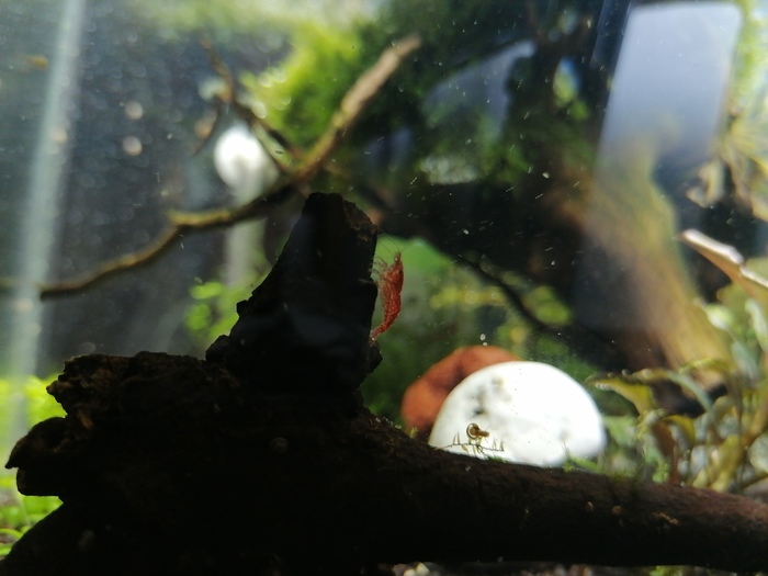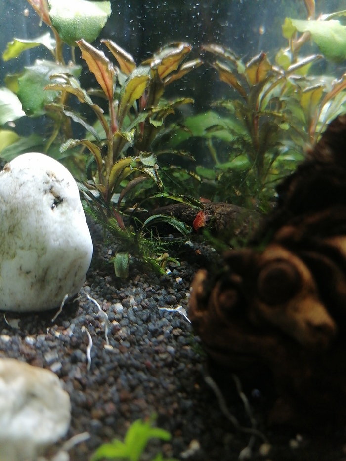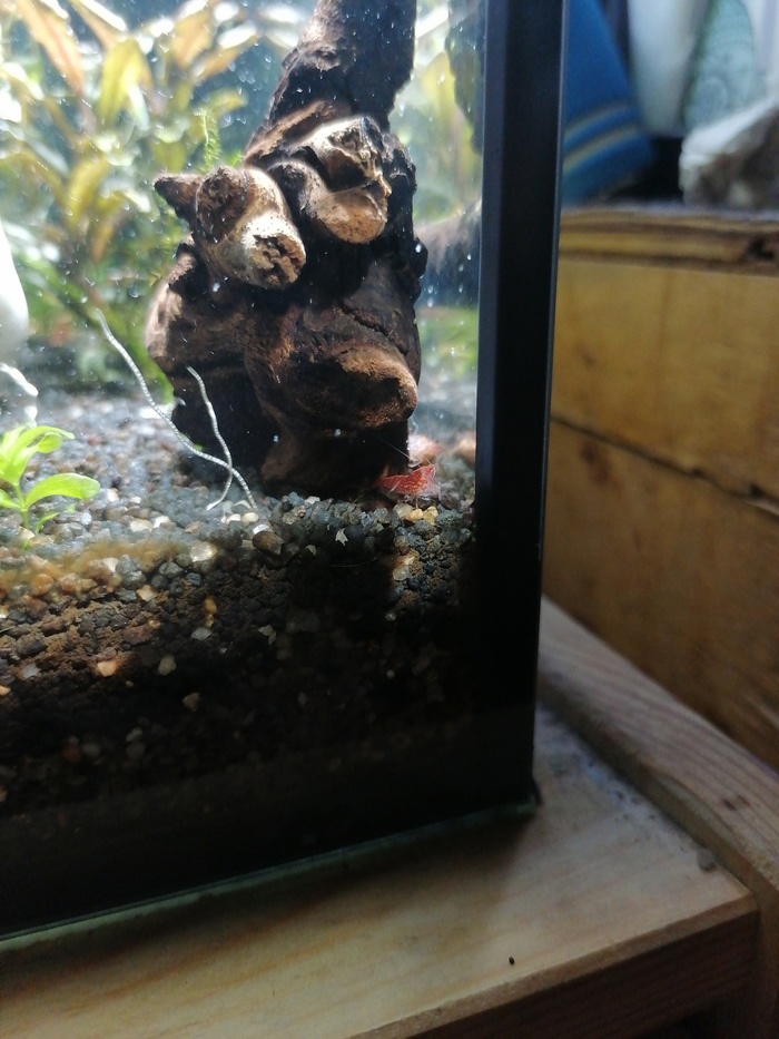 Вот так мой креветочник выглядит сейчас. Это аквариум куб на 23 литра. Но ещё в марте это был панорамный аквариум на 30 литров.